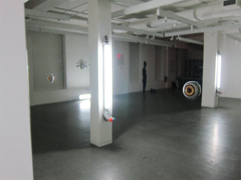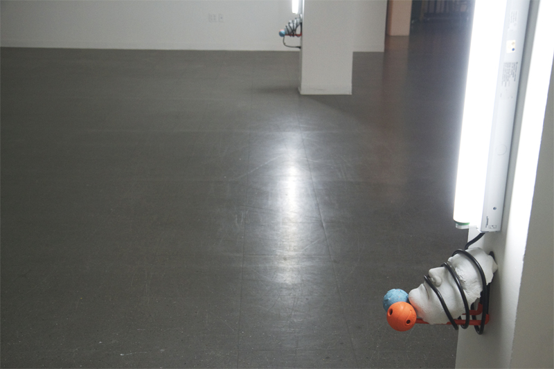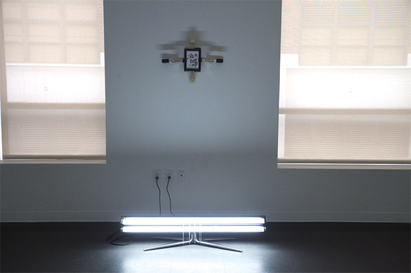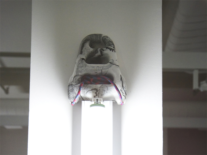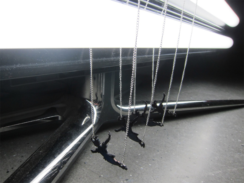 fluorescent daylight tubes, fixtures, flatscreen TV mount, chain necklace, laser cut acrylic