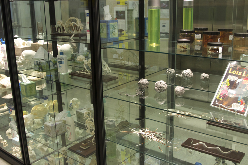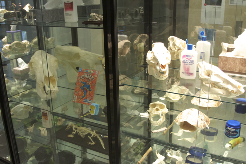 vacuform plastic, solution with artist urine, sperm, fingernails, hair, Bart sculpture by Yasmeen, and c-prints in SVA Nature & Technology Lab collection case